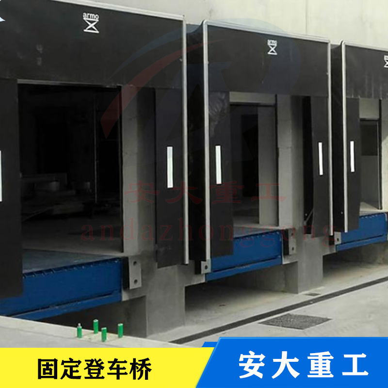 固定液壓登車橋式實現貨物快速裝的專用輔助設備,他的高度調節功能使貨車與庫房的貨臺之間架起一座橋梁,叉車等搬運車輛通過它能直接駛入貨車內部進行貨物的批量裝卸。