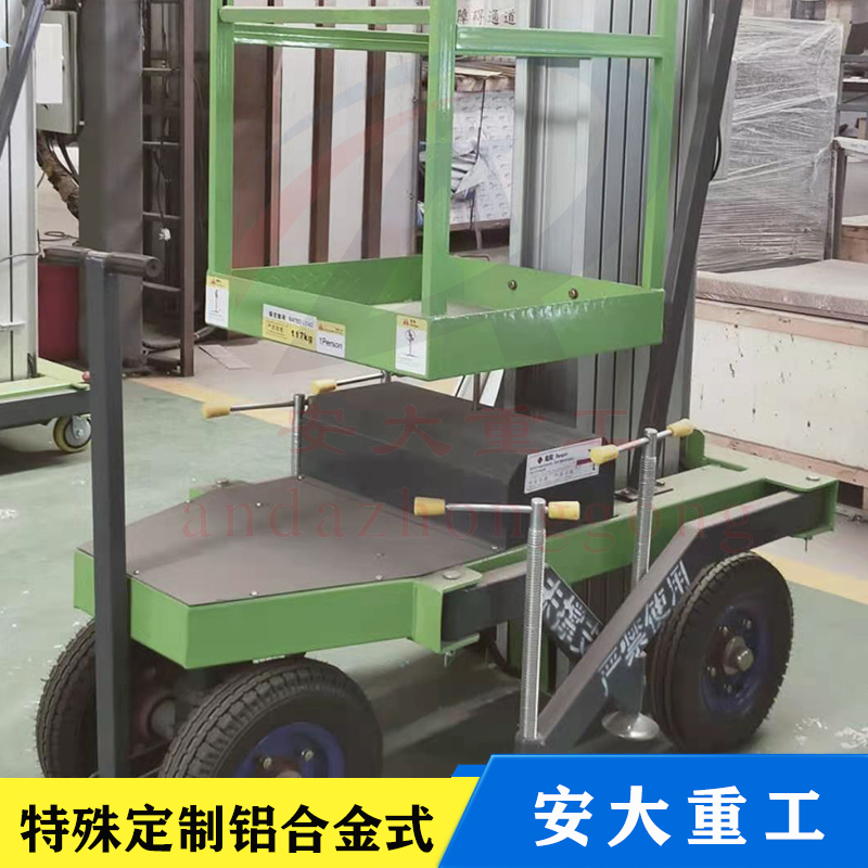 鋁合金式升降平臺采用高強度優(yōu)質(zhì)鋁合金材料,具有造型美觀、體積小、重量輕、升降平穩(wěn)、安全可靠等優(yōu)點,平臺自身佩戴保險鋼繩和安全保護裝置,并能夠上下操作,廣泛用于工廠、賓館。